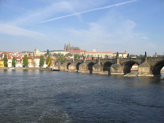早速街にでた彼は、とりあえず共和国広場から王の道をたどってプラハ城へ行くことにした。ワルシャワでは天気に恵まれず肌寒い感じだったため、今ひとつ気分ののらなかった彼だが、ここプラハは快晴で暑いほど。上着を脱いで歩き出す彼の足取りは軽い。旧市街広場では、頭に鳩がとまってちょっとお間抜けなヤンフス像の足下で、話をしている人や待ち合わせをしている人が腰をおろしている。天文時計の前では、写真を撮ったり、仕掛けが動きだすのを今かと待っている観光客たちが目に付く。カレル橋の上では、絵描きやバンドの演奏に人だかりができ、丘の上のプラハ城では正午に衛兵交代式が行われ、聖ヴィート大聖堂の塔に登ればプラハの街が一望できる。中世ヨーロッパのテーマパークと言ってもいいほどに、いたれりつくせりな町並みが人々が引き付ける。